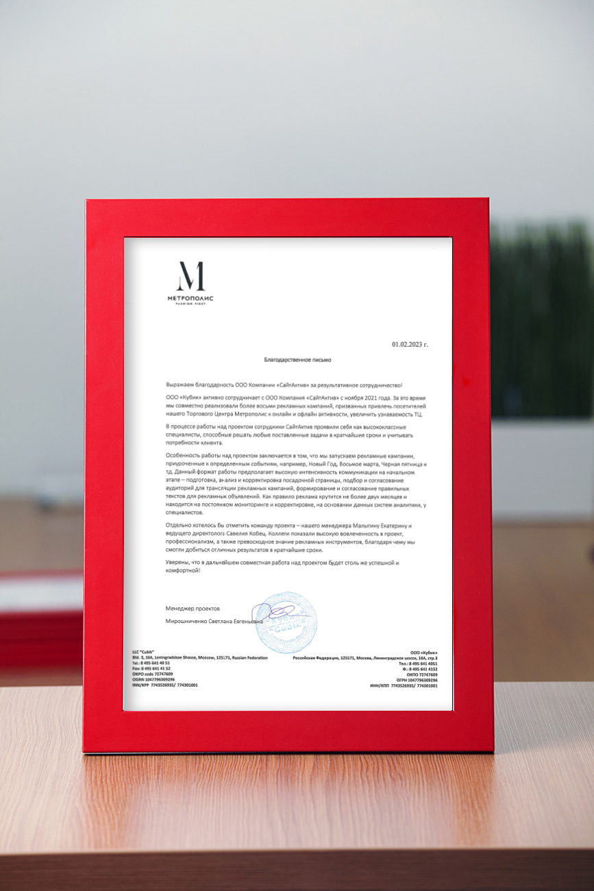 Рекламные кампании в период Новый год и 23 февраля и 8 марта в ТЦ «Метрополис», г. Москва